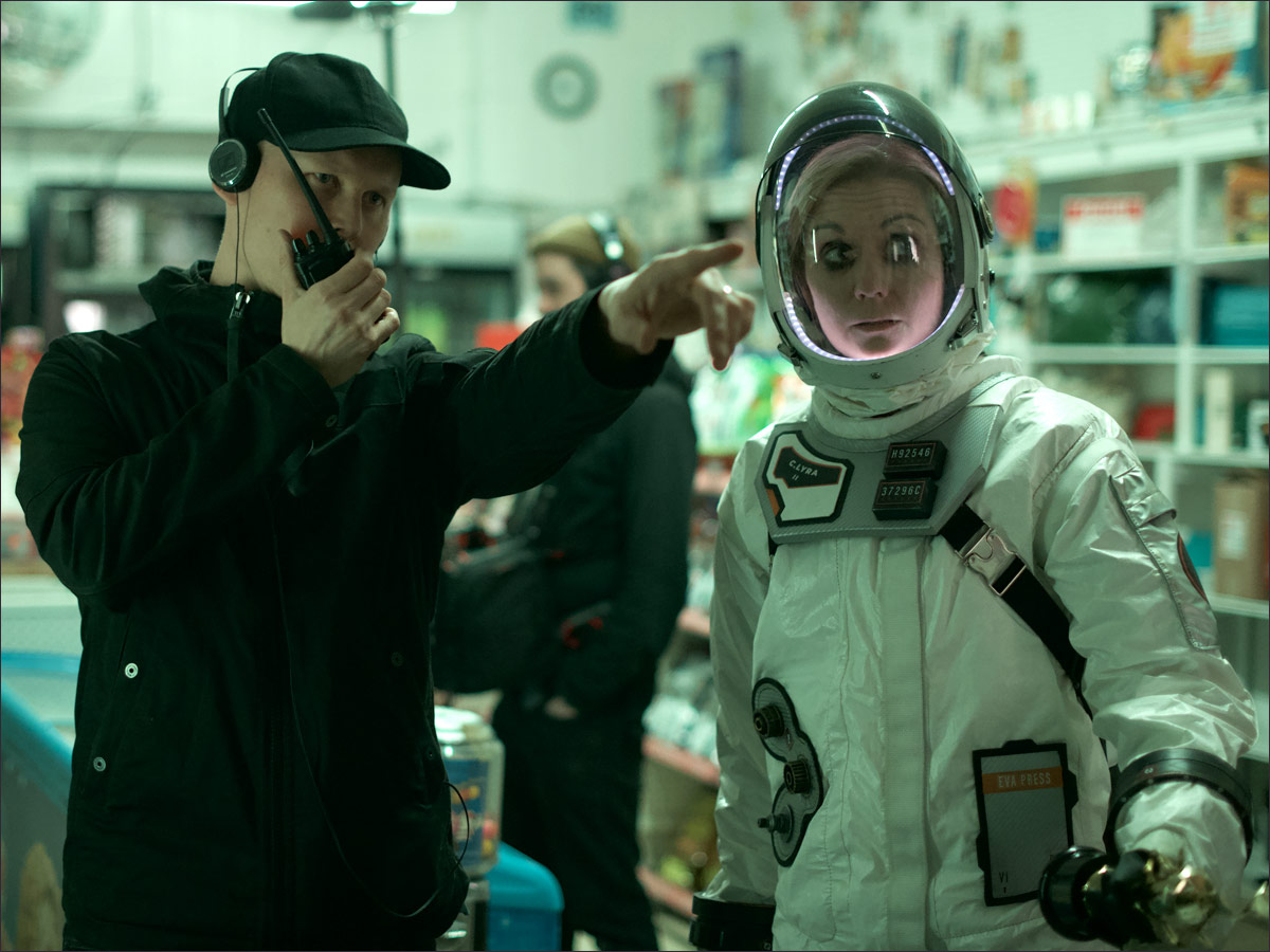 Tate Young directing the tremendous Natalie Lisinska (Orphan Black, Mary Kills People) in the spacesuit -- who can't hear a damn thing except what's coming through her earpiece.